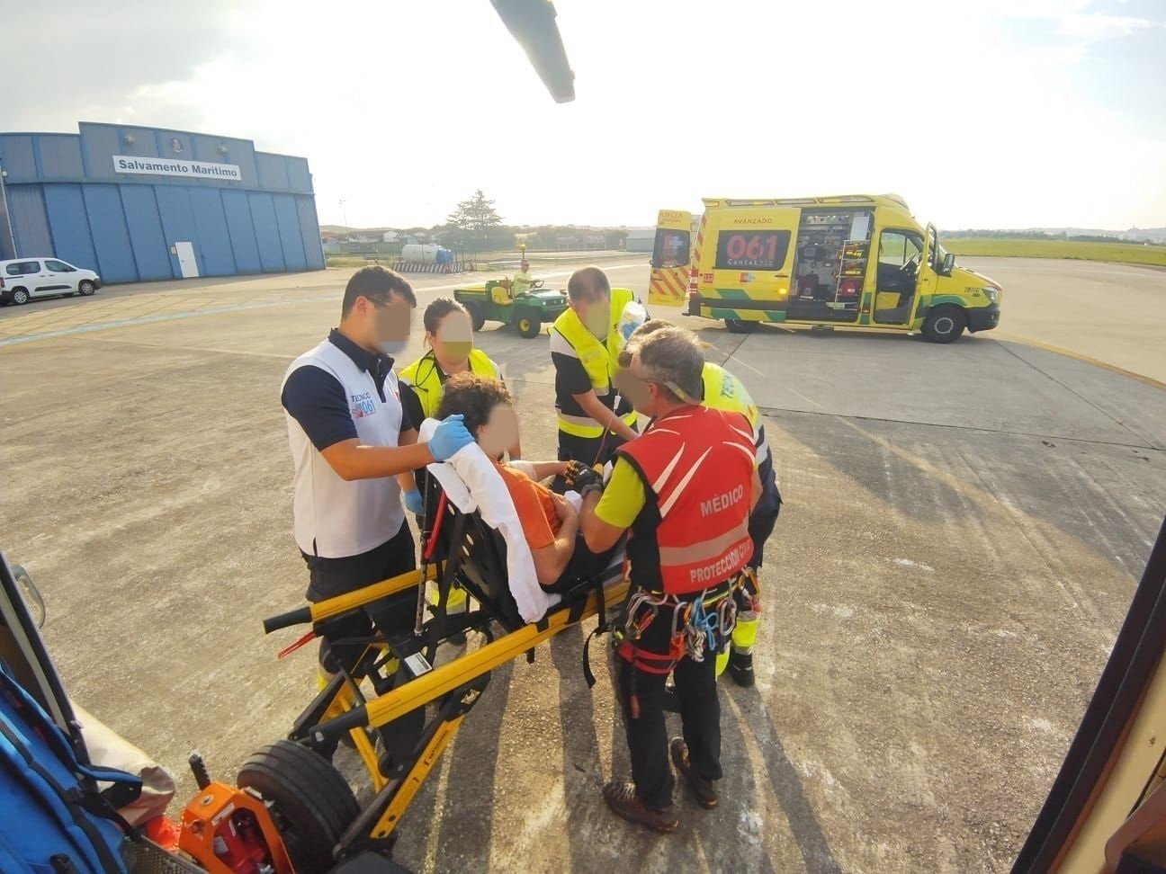 El herido fue trasladado hasta el aparcamiento de El Soplao, donde ha quedado al cuidado del médico del helicóptero del Gobierno regional para su traslado a Valdecilla.