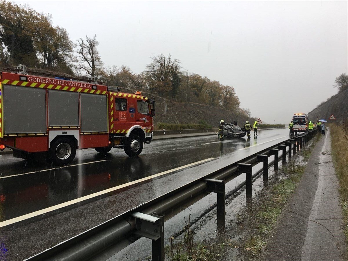 Bomberos autonómicos también han realizado este miércoles otra salida a primera hora de esta tarde tras un accidente donde un vehículo quedó boca abajo en la autovía A-67, a la altura de la localidad de Enmedio, en sentido Santander. La conductora ha resultado herida leve y pudo salir del habitáculo por sus propios medios.