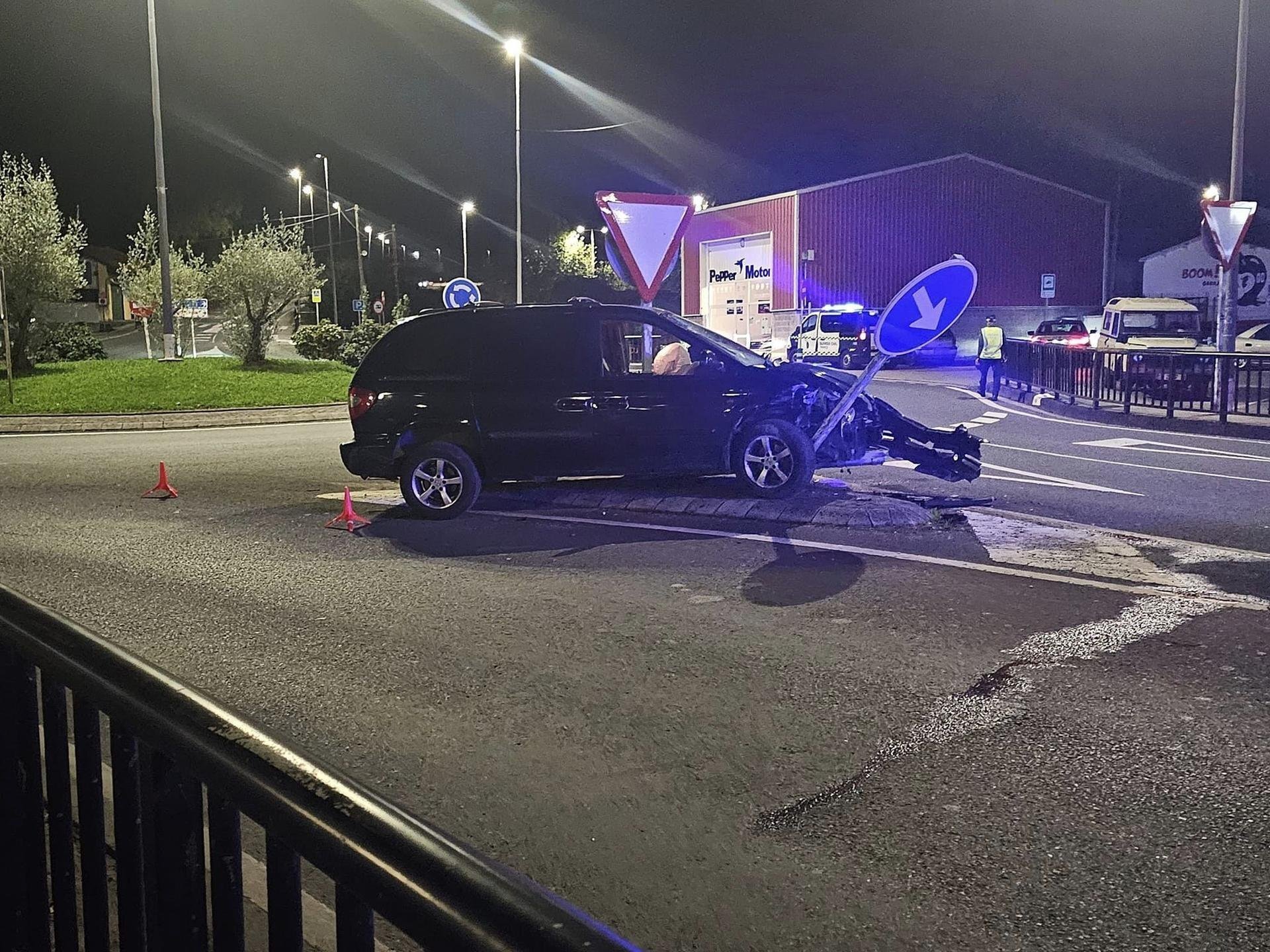 El vehículo llevaba sentido Virgen de la Peña cuando por causas que se investigan chocaba contra las barandillas laterales de la rotonda y acaba en la mediana de separación con el carril sentido Treceño.