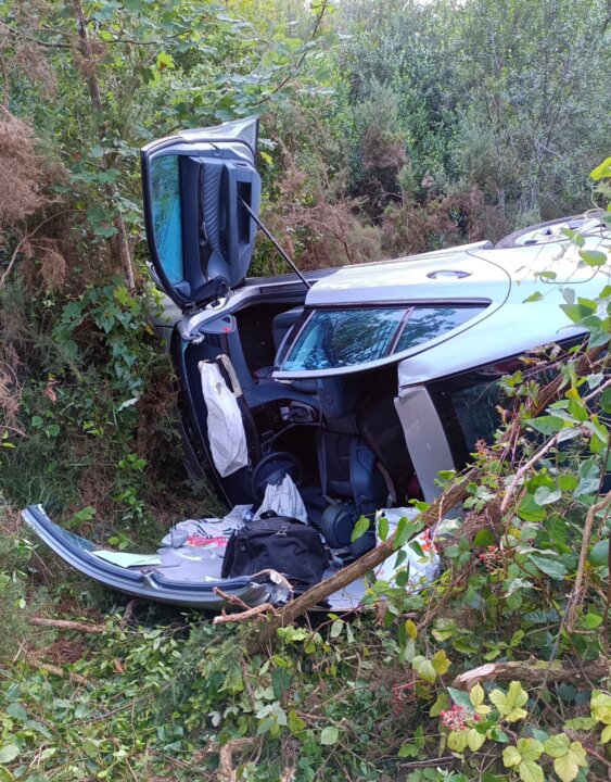 Dos personas heridas tras salirse de la vía y volcar su vehículo en Udías