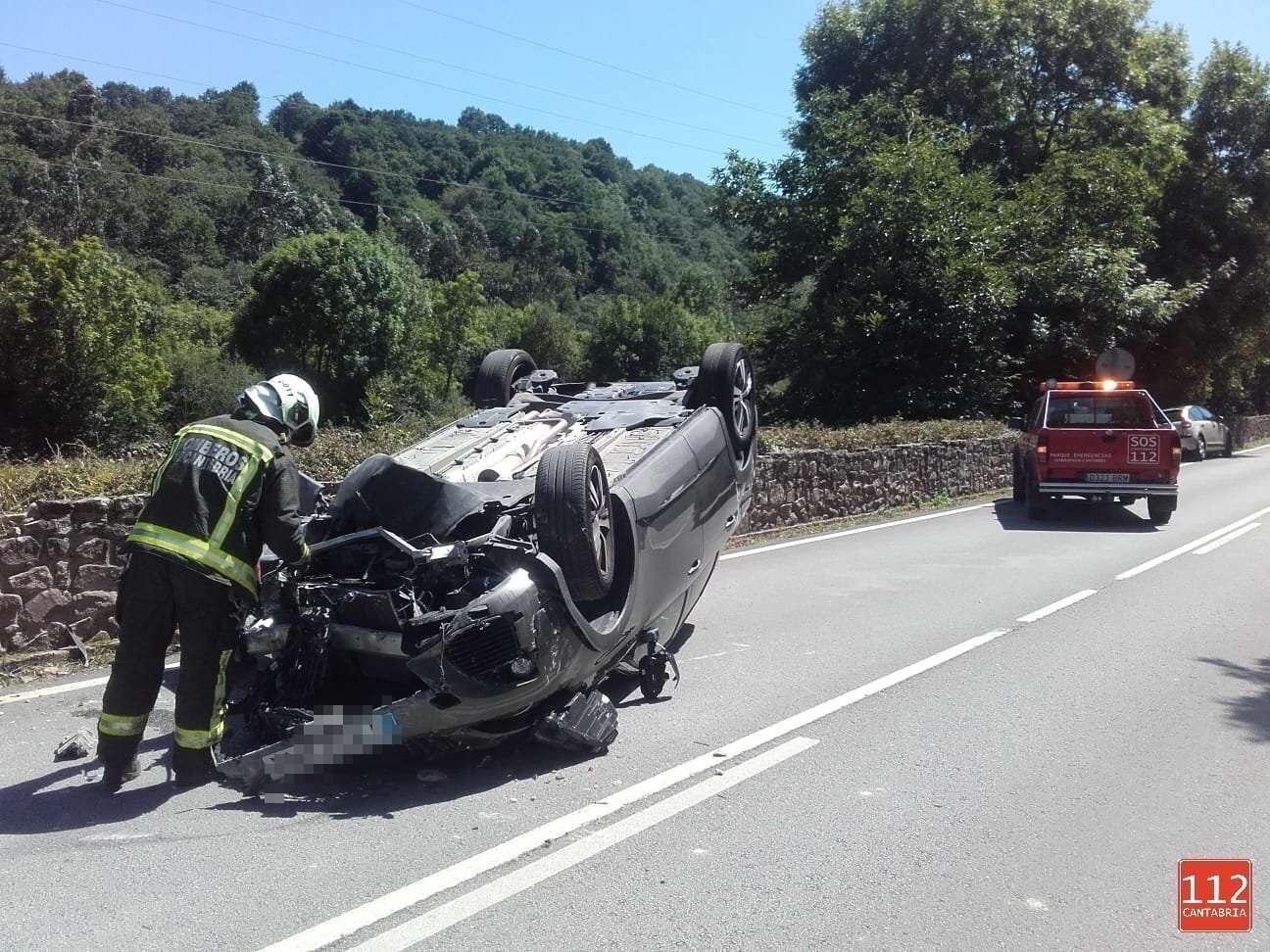 Un vehículo volcaba a primera hora de la tarde de este sábado mientras circulaba por la CA-280 a su paso por Renedo de Cabuérniga.