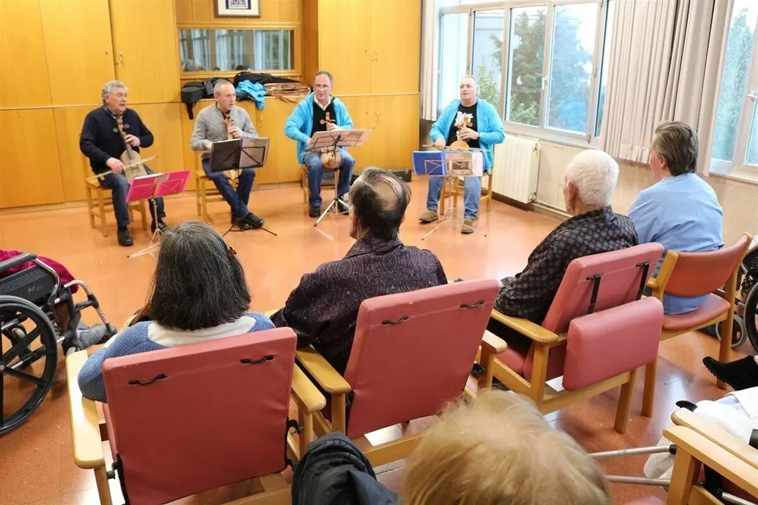 El grupo musical 'Rabelistas del Besaya', integrado por Juan Ramón López, Ramón Martínez, Federico Estalayo y Víctor San Miguel, ha acercado la música tradicional de Cantabria al Hospital Santa Clotilde en la primera actividad lúdico-musical de 2019 organizada por los Servicios de Voluntariado y Pastoral (SAER) del centro perteneciente a la Orden de los Hermanos de San Juan de Dios.