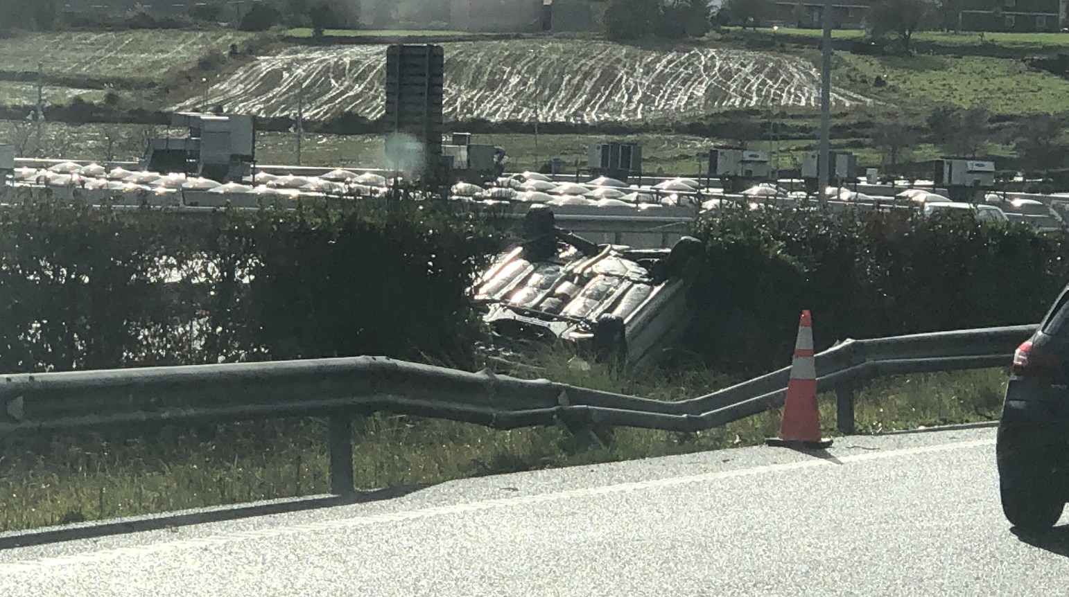 Esa tarde, en la autovía S20, también sentido Torrelavega, a su paso por El Alisal, un conductor perdía el control y su vehículo quedaba volcado en la mediana, y así, como posado boca abajo, lleva 13 días. Hasta el lugar se desplazó Guardia Civil y mantenimiento de carreteras, el ocupante del vehículo resulto ileso.