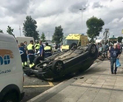 El vehículo de la imagen circulaba por el carril derecho, en el sentido de la marcha, "a mas de 100 y se saltó el semáforo" según relata un testigo a ifomo, prosigue "primero impactó contra un vehículo, conducido por una joven, que circulaba por el carril central y después, volcaba" quedando tal como se ve en la imagen e impactando contra una furgoneta que se encontraba en carga y descarga, hechos que aún no han sido confirmado por la Policía.