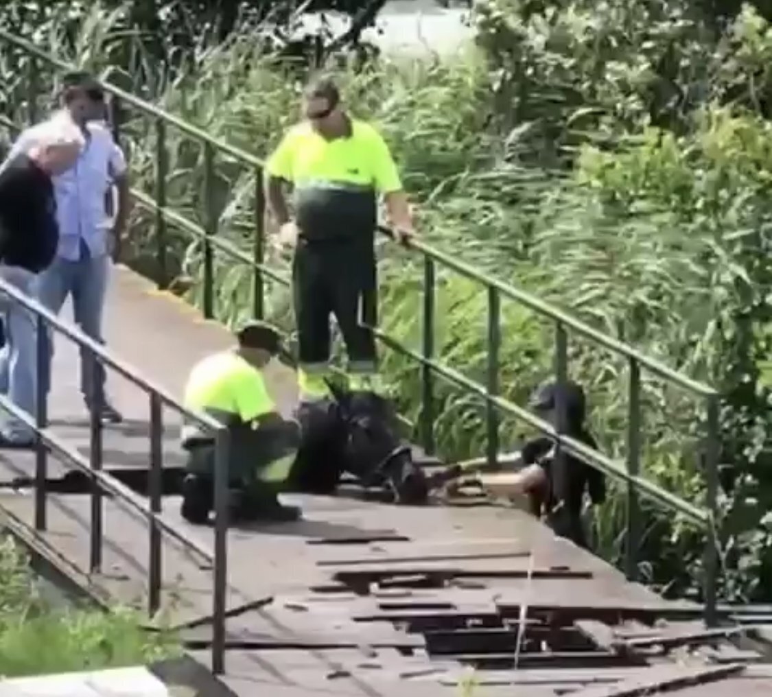 Una de las pasarelas cedió al paso del animal y su jinete.