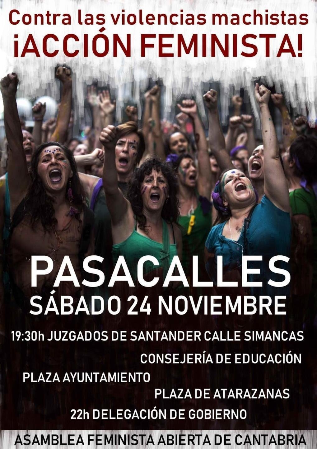 La Asamblea Feminista Abierta de Cantabria ha organizado para este sábado, 24 de noviembre, a partir de las 19.30 horas, un pasacalles con el que pretende "visibilizar la violencia contra las mujeres" en la jornada previa al Día Internacional contra la Violencia de Género.