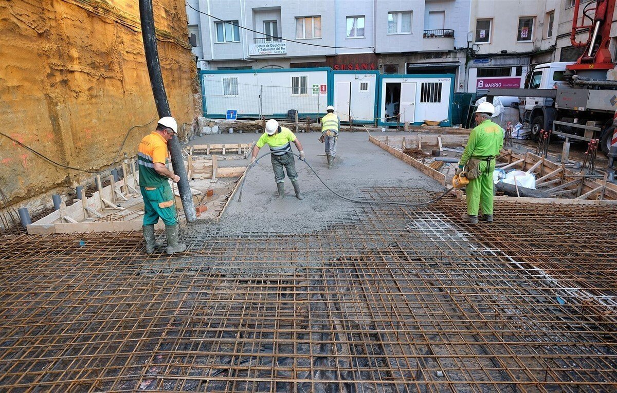 La construcción del nuevo edificio administrativo de la calle La Paz, que aglutinará todos los servicios del área económica del Ayuntamiento de Santander, avanza y ya se ha ejecutado la primera losa de hormigón de la edificación, la que se situará a nivel de calle.