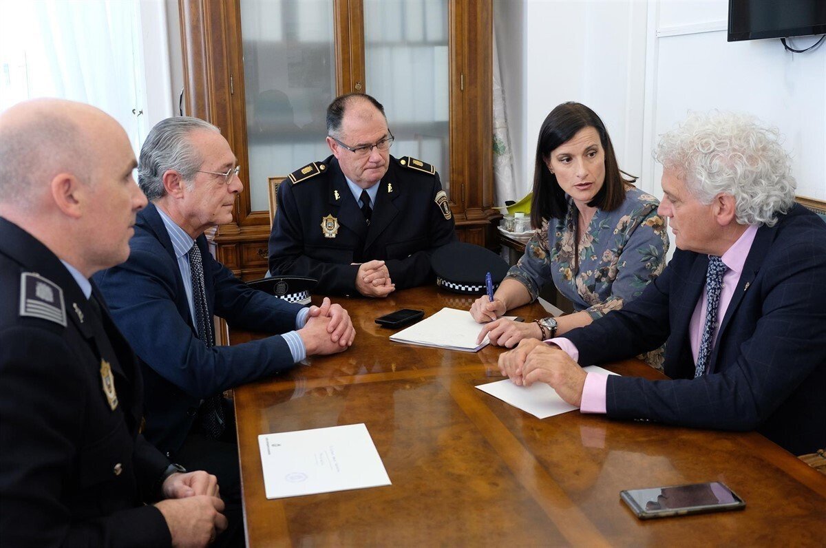 La alcaldesa de Santander, Gema Igual, y el presidente de la Asociación de Hostelería, Ángel Cuevas, se han reunido con el concejal de Personal y Protección Ciudadana, Pedro Nalda, y responsables de la Policía Local para coordinar estas labores.