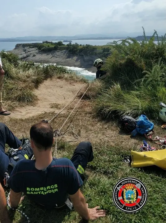 Uno de los bomberos realizó el descenso en vertical y otros dos acudieron por las piedras hasta la zona donde se encontraba el animal. Además, por prevención, también se movilizó a la zona una lancha de Cruz Roja Española en Cantabria.