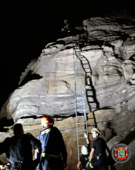 Bomberos de Santander rescataron anoche a un persona atrapada en lo alto de la roca del 'Niño Neptuno', en la playa del Camello de la ciudad, y que no podía bajar por sus propios medios.