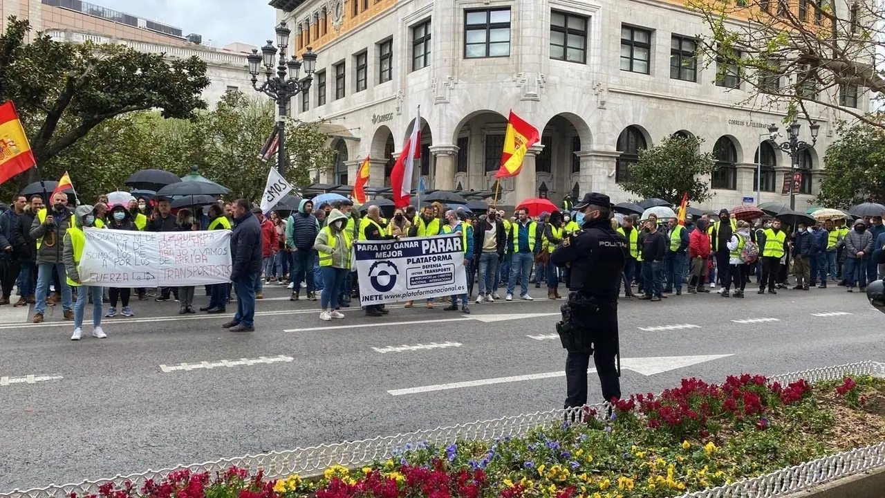 La marcha, convocada por la Plataforma en Defensa del Sector de Transporte de Mercancías, ha partido a las 11.30 horas de la Plaza del Ayuntamiento de Santander y ha llegado a la Delegación del Gobierno, en la calle Calvo Sotelo, donde los participantes han permanecido concentrados por espacio de más de una hora.