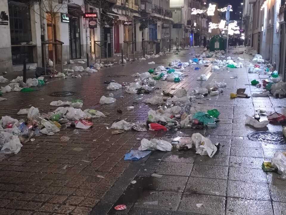 "Pese a que hubo miles de personas, la presencia conjunta de Policía Local y Policía Nacional ayudó a que no hubiese incidentes destacables más allá de los habituales en este tipo de concentraciones", señalan a Europa Press fuentes municipales tras las quejas de representantes vecinales, que han contrastado el refuerzo del servicio -con más medios materiales y humanos- con los restos de basura (bolsas, botellas, envases, vasos, etc) en plazas y calles.