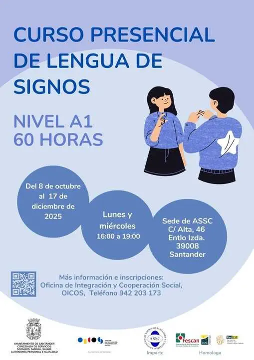 La Concejalía de Autonomía Personal de Santander y OICOS ha organizado un nuevo curso presencial de Lengua de Signos Española nivel A1, dirigido tanto a empleados municipales como a la ciudadanía en general.