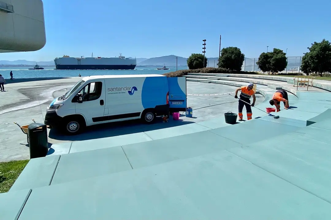 Tras la pintura, los operarios finalizarán con un sellado de la superficie mediante una capa de resina.