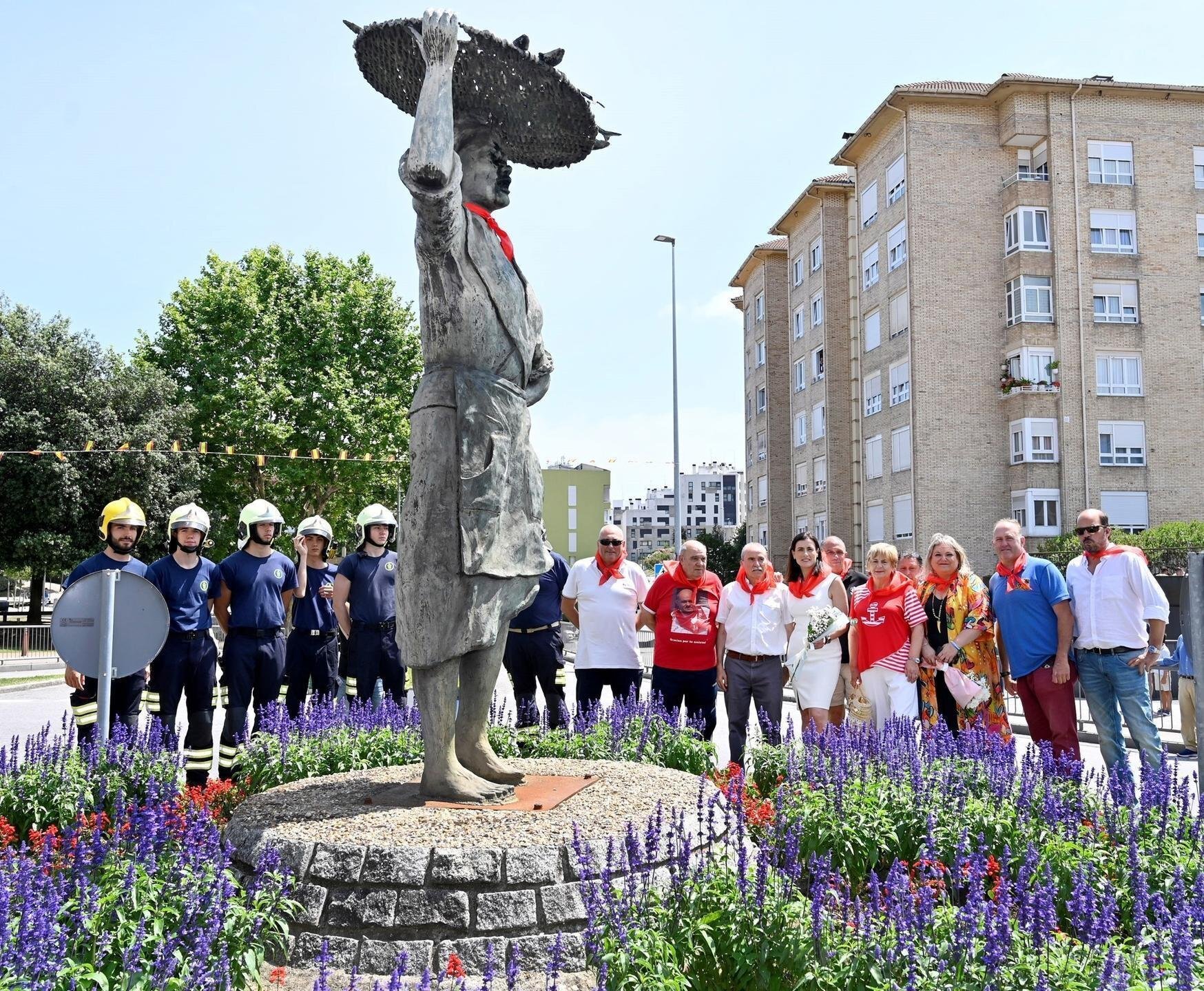 La alcaldesa, Gema Igual, y representantes de la asociación de vecinos de Tetuán han participado este mediodía en el acto de colocación del pañuelo de San Fermín a la estatua de la Sardinera.