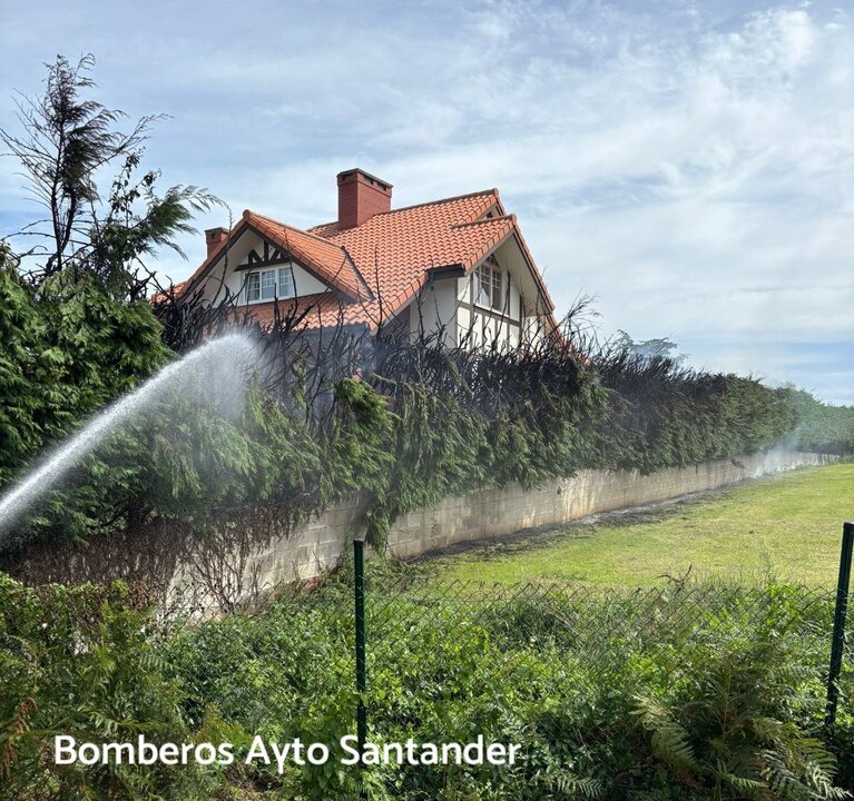 Los Bomberos del Ayuntamiento de Santander han extinguido un incendio en una vivienda unifamiliar, que ha afectado al cercado vegetal de la misma.