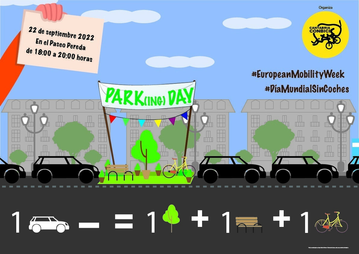 Cantabria ConBici celebrará el próximo jueves, 22 de septiembre, un 'PARK (ing) DAY' en la zona del Paseo Pereda de Santander para exigir al Ayuntamiento la reducción del espacio ocupado por los coches y su sustitución por elementos como árboles, bancos y bicicletas.