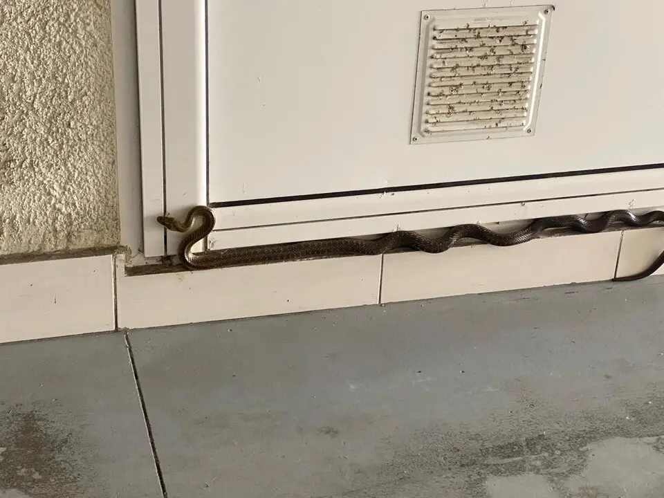 Una culebra ha sido captura este viernes en la puerta de una vivienda en la calle Inés Diego del Noval, en Cueto, Santander.