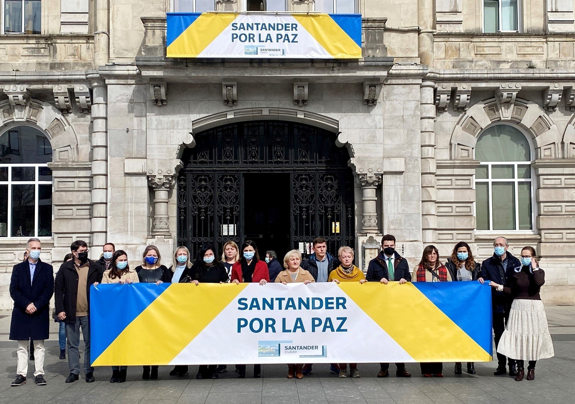 Ha sido tras desplegar una lona con los colores de la bandera de Ucrania y el mensaje 'Santander por la paz' en el balcón del Ayuntamiento y la celebración del segundo minuto de silencio en solidaridad con el pueblo ucraniano y como muestra de condena a la invasión rusa.
