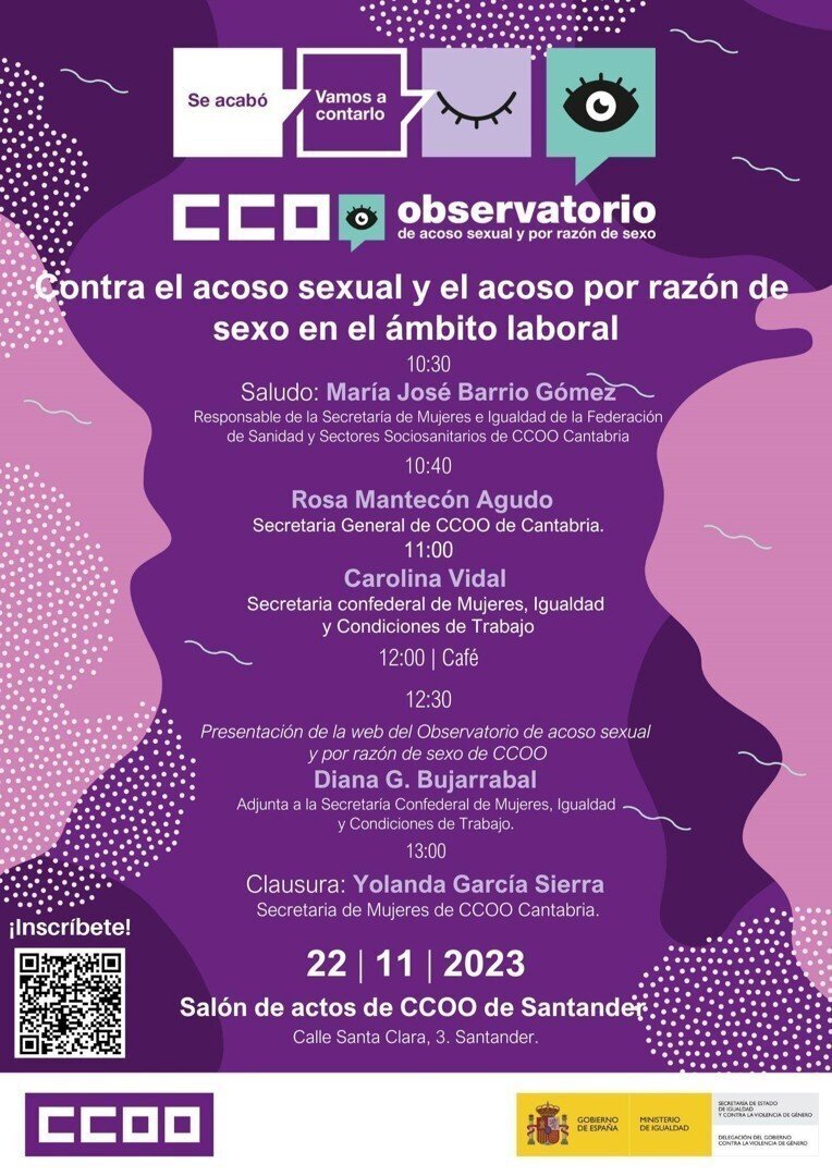 Comisiones Obreras (CCOO) de Cantabria ha organizado, coincidiendo con la conmemoración del Día Internacional de la Eliminación de la Violencia contra la Mujer (25 de noviembre), una jornada abierta para abordar el acoso sexual y por razón de sexo en el ámbito laboral.