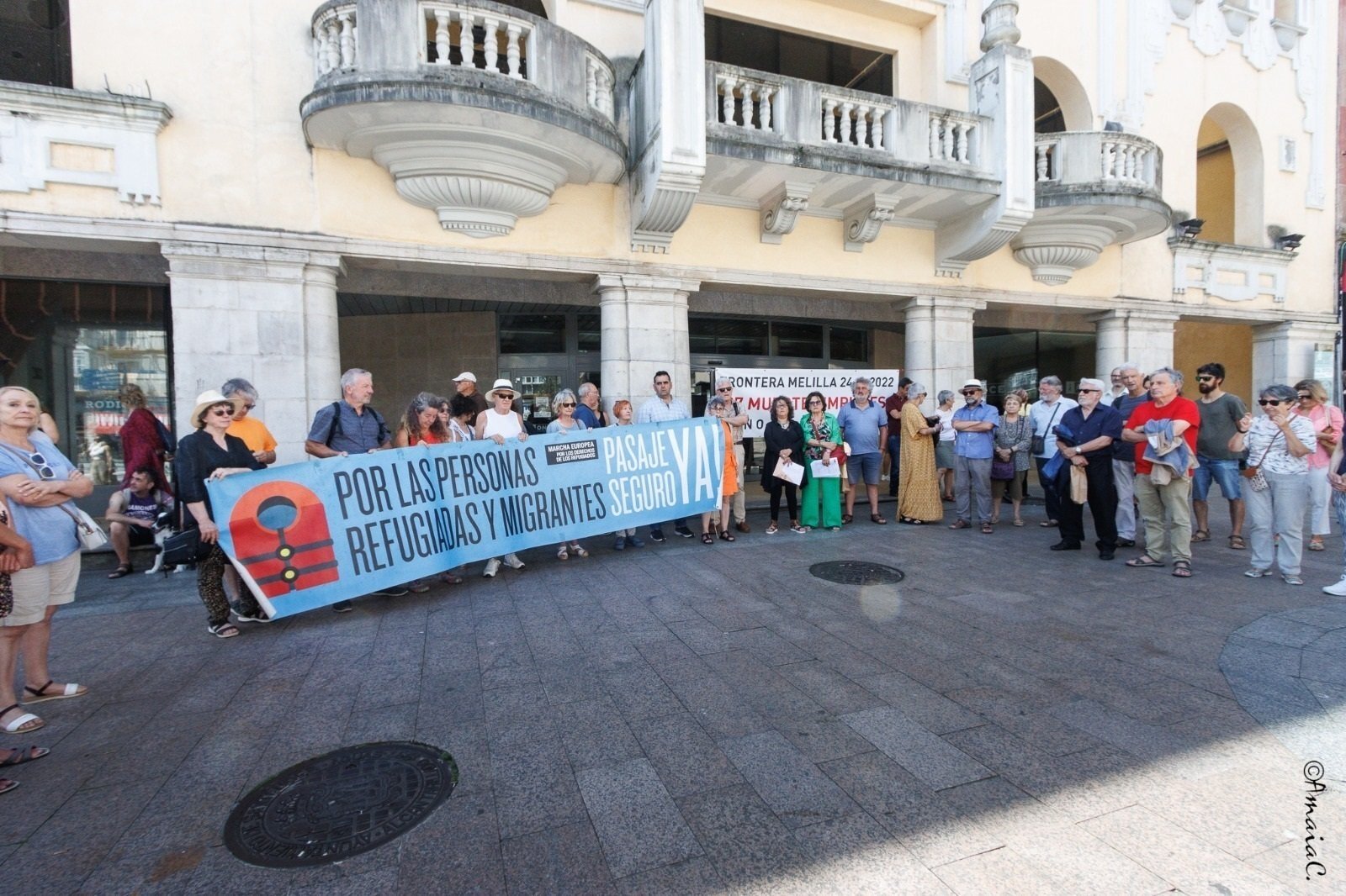 Allí, integrantes de Pasaje Seguro han leído un manifiesto, en el que han afirmado que el suceso de la valla de Melilla el 24 de junio de 2022, en el que "al menos fallecieron 37 personas" y otras "77 siguen desaparecidas", "no fue un accidente", sino "un crimen de Estado perpetrado por las autoridades marroquies" ante la "impasibilidad" y la "complicidad" de las españolas.