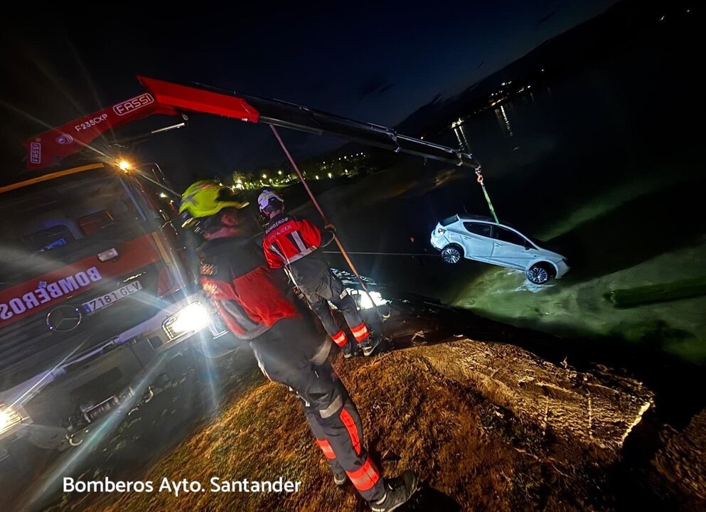 Los efectivos del Cuerpo de Bomberos de Santander sacaron el coche del agua con una grúa y lo depositaron en la calzada. El vehículo fue trasladado al depósito municipal.