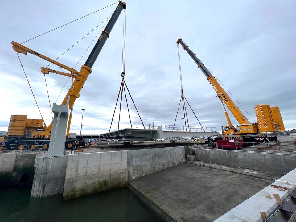 Colocada la rampa para el tráfico rodado en el muelle de Raos 7 del Puerto de Santander