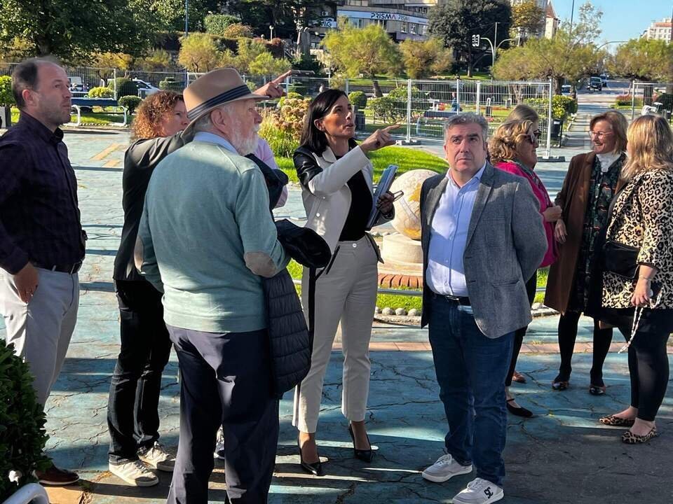 La alcaldesa ha detallado que los Jardines de Piquío cuentan con una superficie de casi 4.200 metros cuadrados, de los que 2.200 son zonas verdes y con "muchísima identidad" tanto por su perímetro de canto rodado como por la propia alineación de las jardineras, así como por los elementos arquitectónico como la pérgola o los monumentos de la bola del mundo o el mapa mundi.