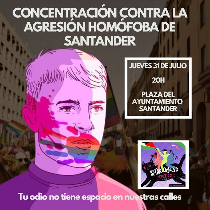 El Bloque Orgullo Crítico Cantabria ha convocado para este jueves 31 de julio una concentración en Santander para denunciar una "agresión homófoba" sufrida por un joven durante las fiestas de la Semana Grande de la capital, que se ha celebrado del 18 al 28 de julio.