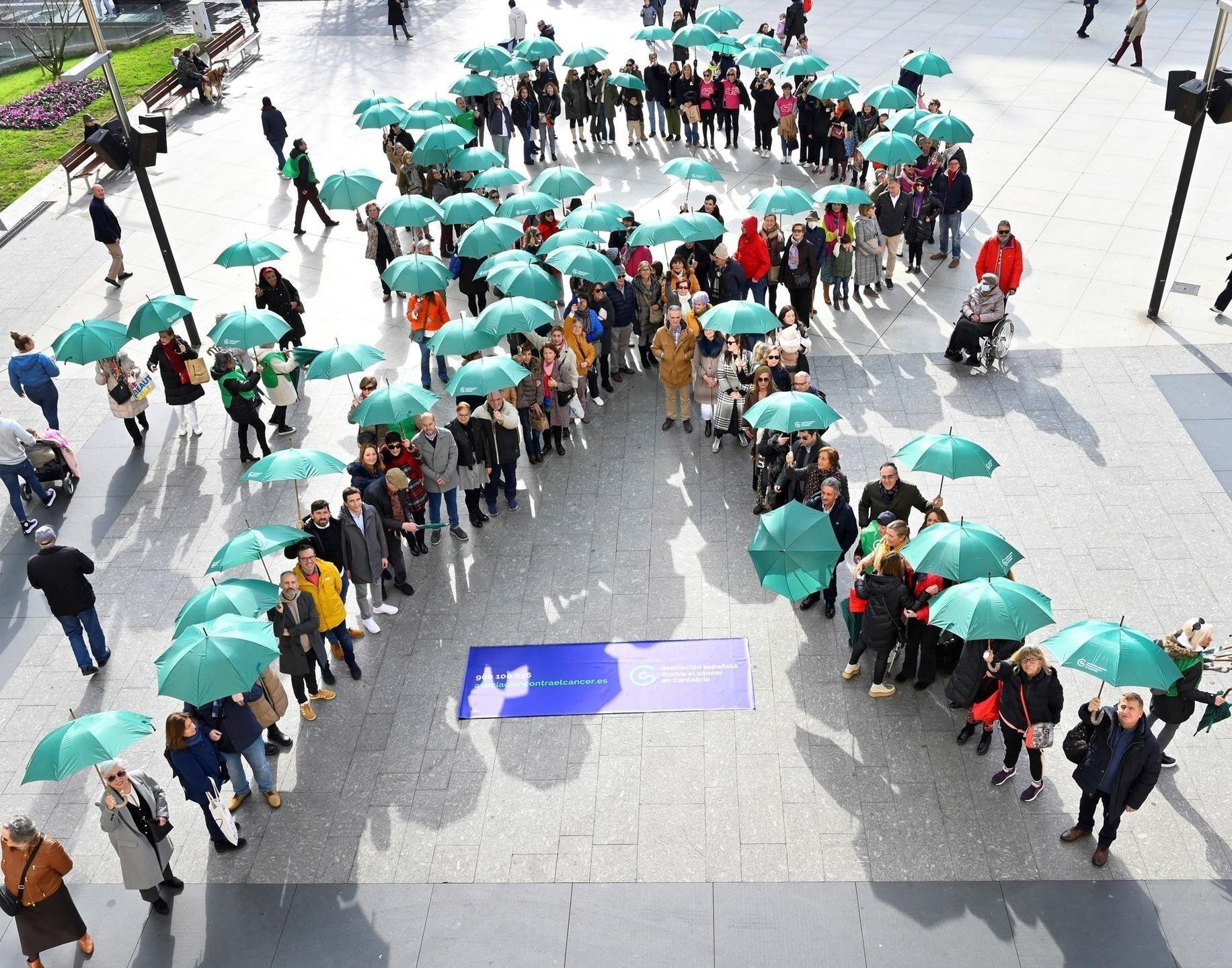 En el transcurso del acto se ha dado lectura a un manifiesto y, a continuación, las decenas de personas asistentes han formado un gran lazo humano verde para simbolizar el apoyo de Cantabria a la lucha contra el cáncer.