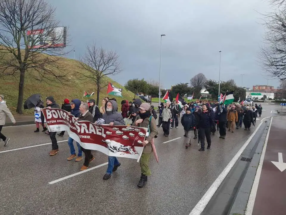 De esta forma, ha partido al mediodía del Complejo Municipal de Deportes Ruth Beitia, donde se han leído mensajes relacionados con el boicot deportivo. Posteriormente, el grupo ha recorrido diversas calles de la zona hasta llegar a las inmediaciones del Centro Comercial El Alisal.