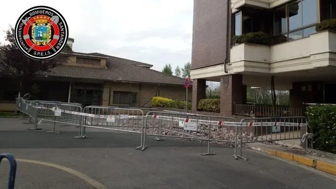 Los bomberos revisaron el estado de la fachada y parte del perímetro del edificio quedó vallado por seguridad.
