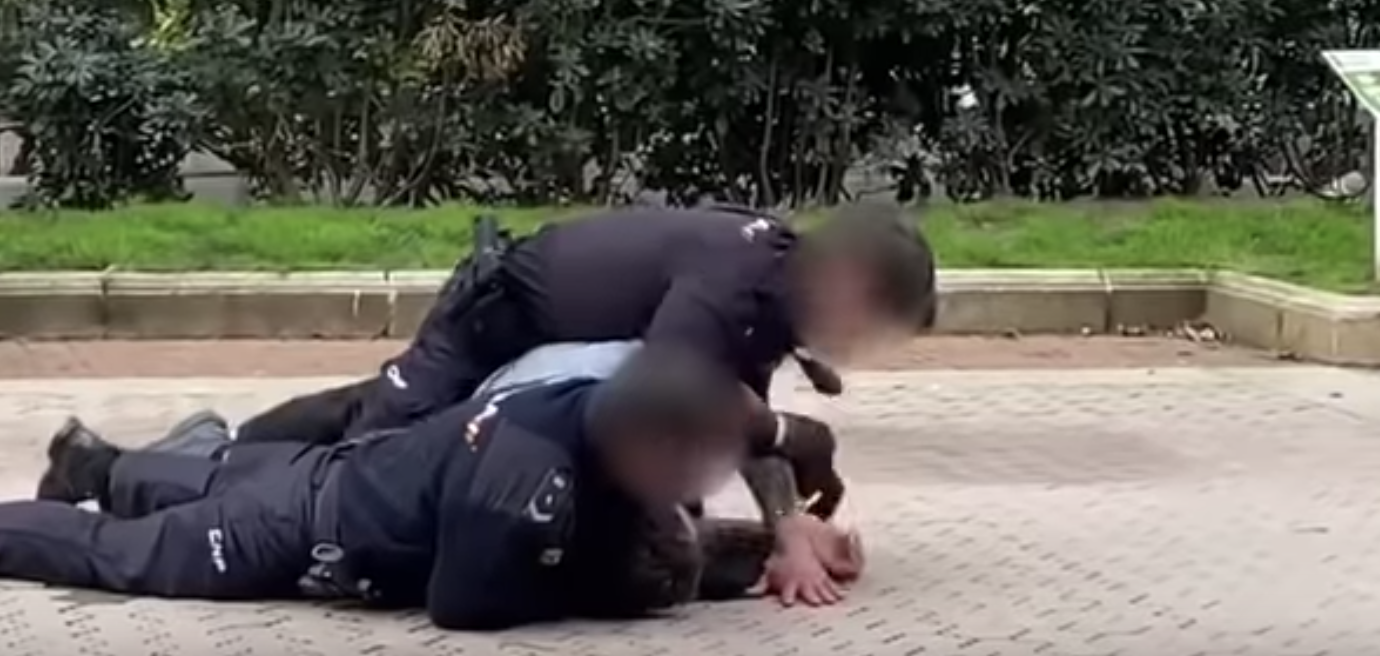 Cuando los agentes le reiteraron que se identificara, éste actuó de forma violenta, propinando un manotazo y un fuerte empujón al policía veterano. Cuando le dijeron que iban a detenerle por un delito de atentado a agente de la autoridad, arremetió violentamente contra el policía, sujetándole por las rodillas y lanzándole al aire.