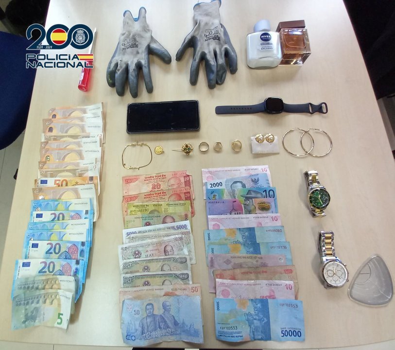 Entre sus pertenencias encontraron un smartwatch, diversas joyas, dos relojes, seiscientos euros y 22 billetes en moneda extranjera, además de un par de guantes.