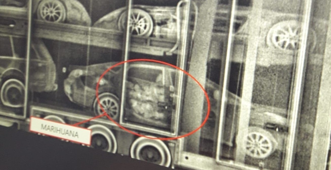 Al comprobar la carga del camión con medios radiológicos se observó que en el interior de los paneles laterales de uno de los coches que transportaba el camión había paquetes que podrían contener estupefacientes.