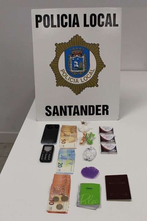 La Policía Local de Santander ha detenido este martes a un joven de 21 años que portaba una bandolera con cocaína, éxtasis y otras sustancias, además de 414 euros, entre otros efectos.