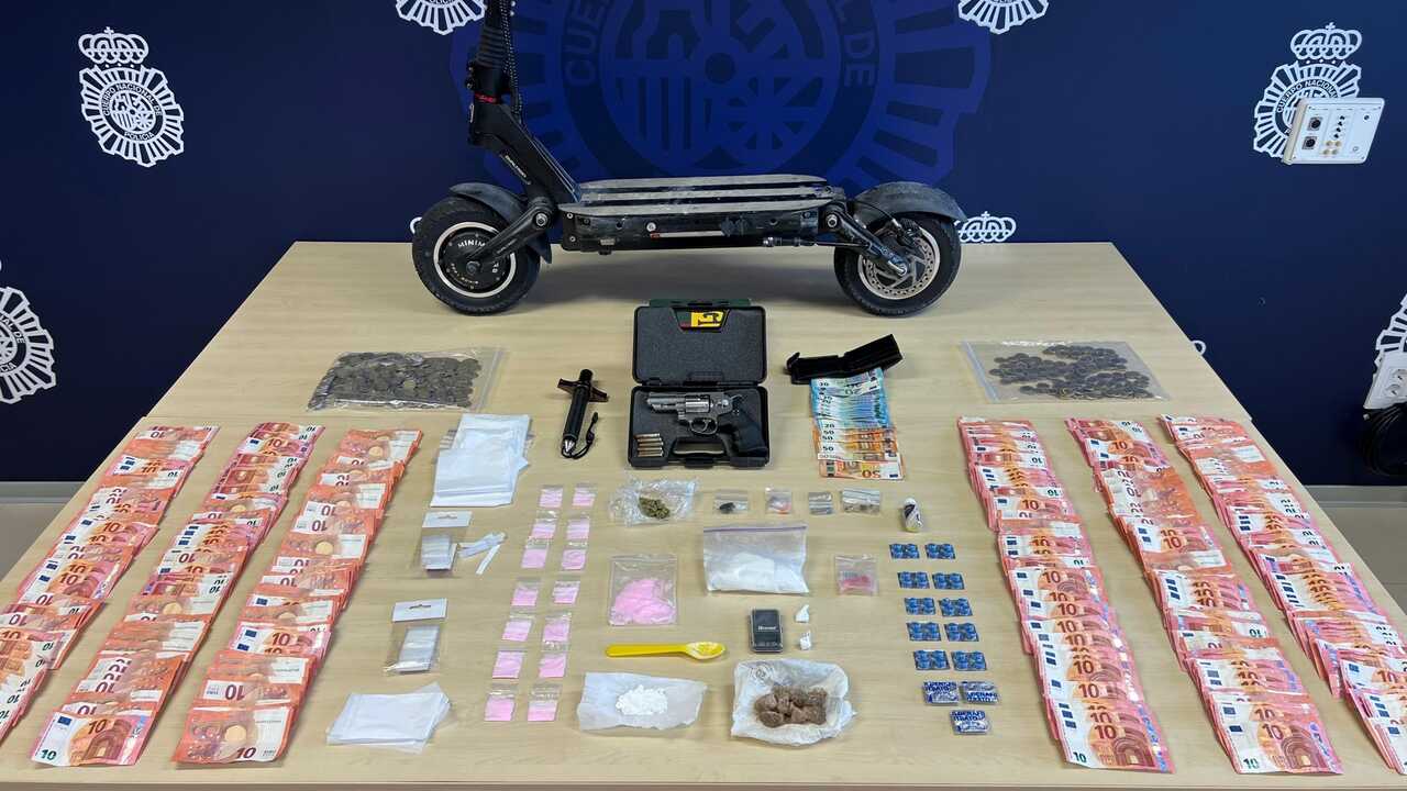 El 8 de octubre por la mañana se detuvo al investigado como presunto autor de un delito de tráfico de drogas. En el registro de su domicilio se intervinieron 72,71 gramos de MDMA; 82,25 gramos de cocaína; 55 pastillas de Viagra; un arma de aire comprimido; una defensa extensible y 5.980 euros, además de otros efectos.