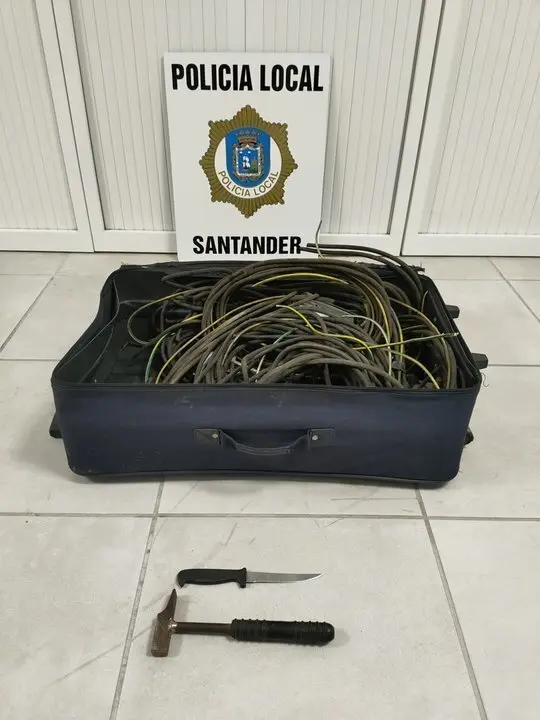 Efectivos de la Policía de Santander se trasladaron al lugar y localizaron a los dos hombres, quienes, al observar la presencia de los agentes, arrojaron a una cuneta un martillo, un cuchillo y una maleta con cable de cobre en su interior, perteneciente a cuatro farolas violentadas por las tapas.