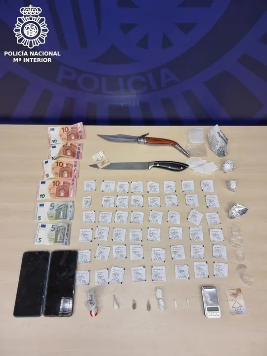 El 22 de diciembre los agentes localizaron y detuvieron a los tres sospechosos como presuntos autores de un delito de tráfico de drogas. Además, registraron el domicilio común de dos de los detenidos, donde incautaron varias dosis de metadona, speed preparado para la venta y papelinas de heroína, así como dinero de curso legal en billetes fraccionados, dos armas blancas y numerosos útiles destinados a esta actividad.