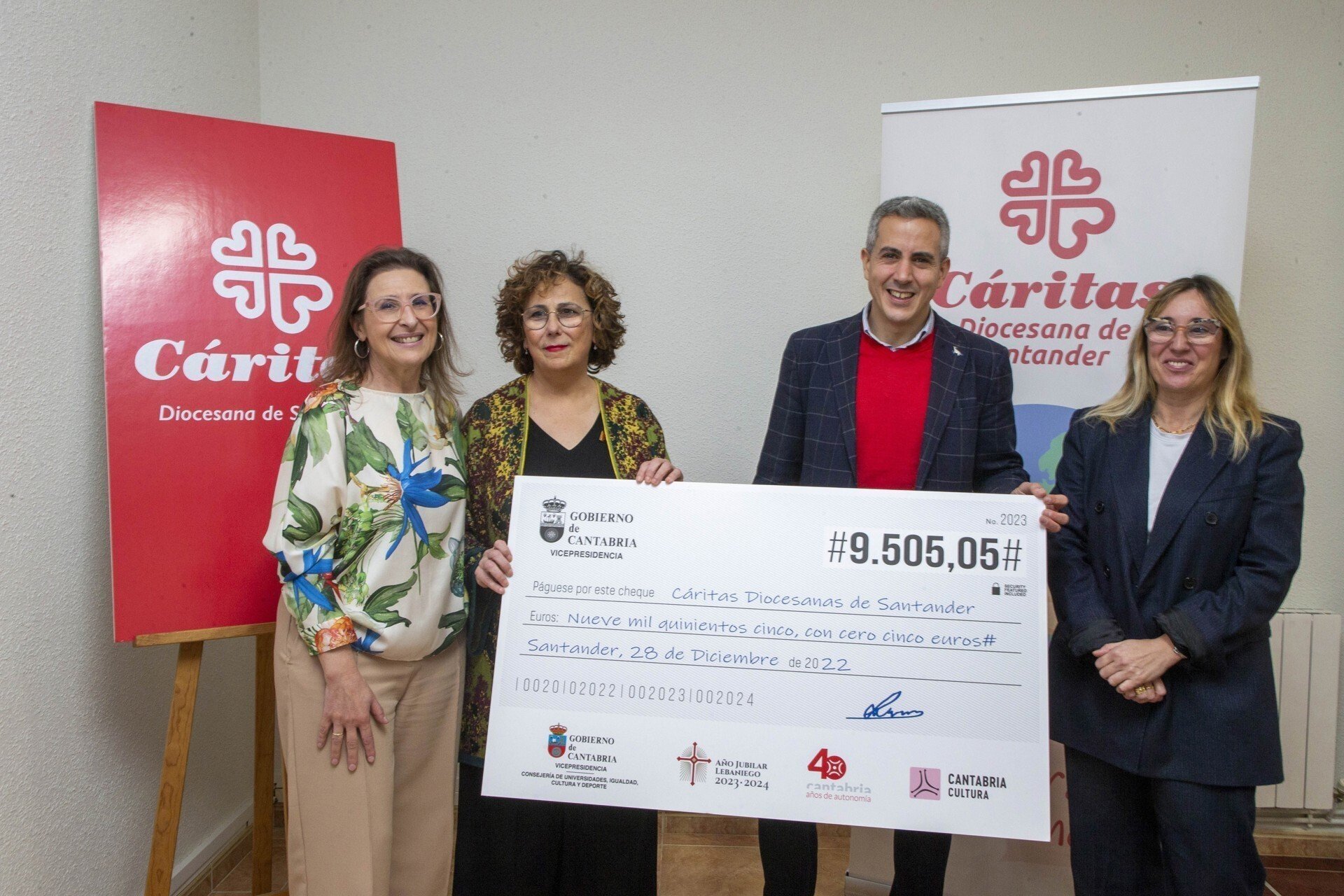 El Gobierno entrega a Cáritas Santander los 9.505 euros del concierto solidario celebrado en el Palacio de Festivales