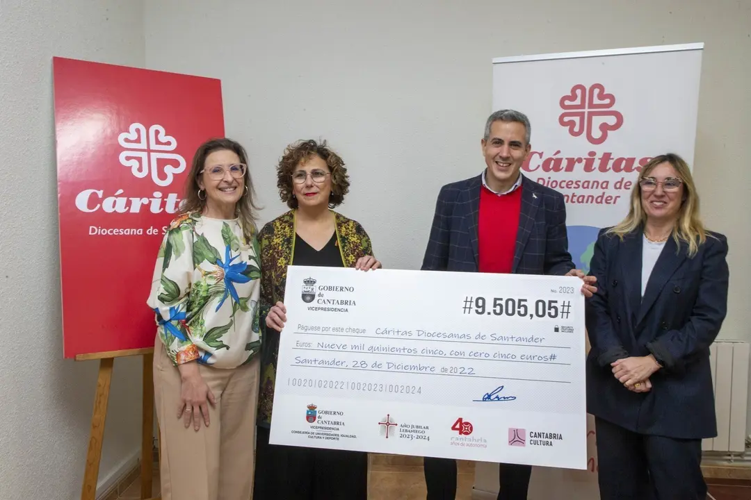El vicepresidente del Gobierno de Cantabria, Pablo Zuloaga, ha entregado este miércoles a la presidenta de Cáritas Diocesana de Santander, Sonsoles López Huete, la recaudación de 9.505 euros delconcierto conmemorativo del 75 aniversario de Cáritas España, que se celebró en el Palacio de Festivales el pasado 17 de diciembre, a cargo del Coro Joven de Santander y del Coro Lírico de Cantabria.