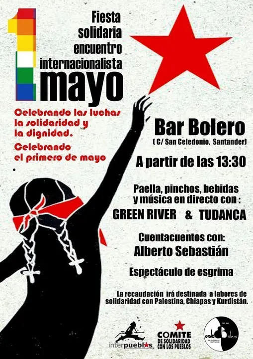 Interpueblos y del Comité de Solidaridad con los pueblos celebrarán el 1 de mayo, Día Internacional de los Trabajadores, con una fiesta en el bar Bolero de Santander (en la calle San Celedonio) en la que recaudarán fondos para proyectos solidarios en Palestina Chiapas y Kurdistan.