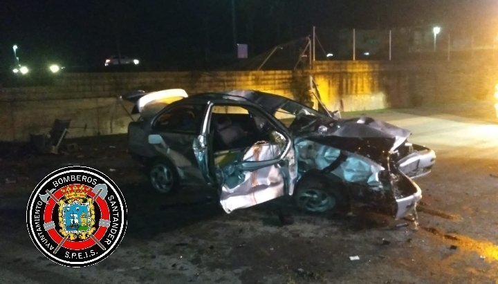 Los bomberos de Santander han tenido que liberar al copiloto, que quedó atrapado entre los restos del coche y que es uno de los jóvenes que ha resultado herido grave.