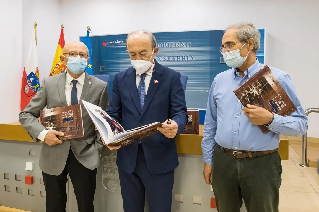 El consejero de Industria, Turismo, Innovación, Transporte y Comercio, Javier López Marcano, ha presentado hoy el libro 'Historia gráfica de Astilleros de San Martín 1878-1989', acompañado del autor, el ingeniero naval Paulo Armengod, y del editor de Tantín, José Luis Fernández Gándara.