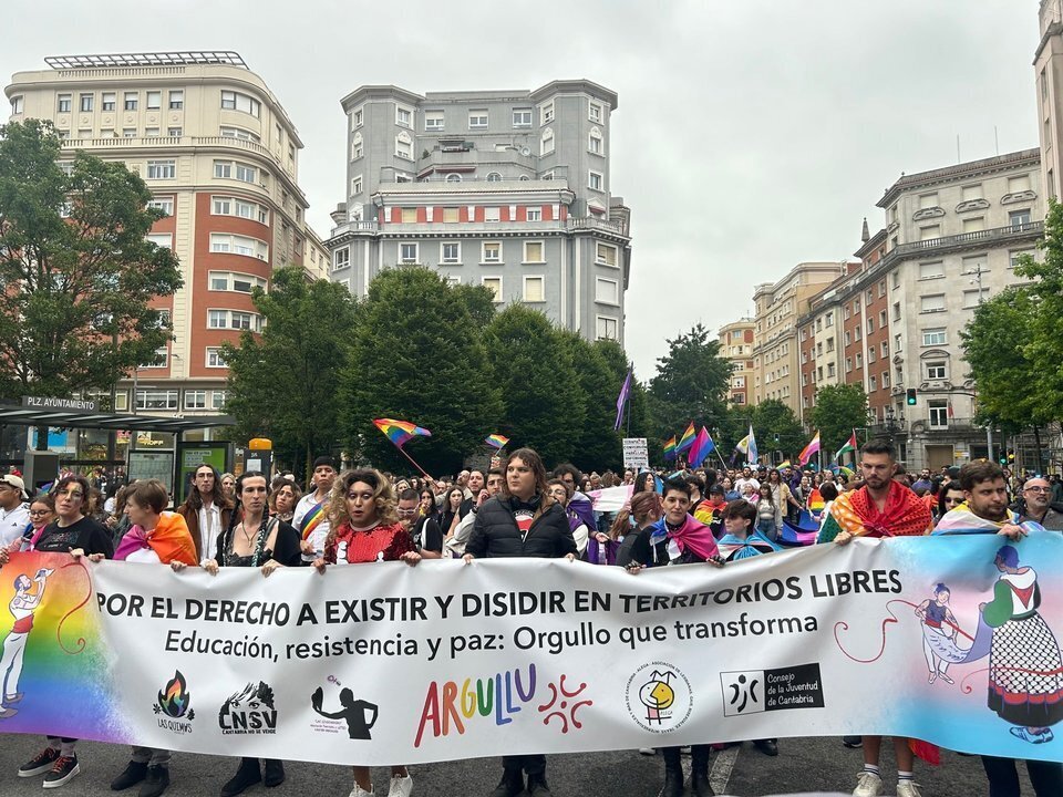 Cerca de 2.000 personas, según la organización, han apoyado la manifestación Argullu'24, convocada por la Asociación de Lesbianas, Gais, Bisexuales y Trans de Cantabria (ALEGA), que ha encabezado una pancarta con el lema 'Por el derecho a existir y disidir en territorios libres. Educación, resistencia y paz: Orgullo que transforma'.