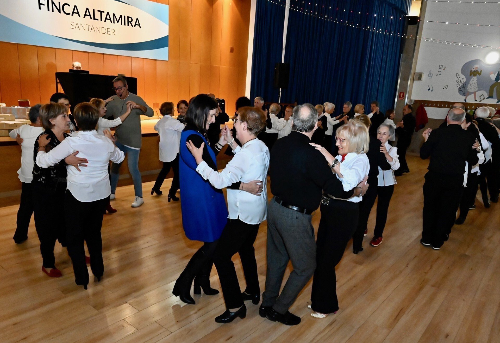 Los mayores de Santander han celebrado este lunes su tradicional fiesta de Navidad en la Finca Altamira, tras su reapertura este verano.La jornada ha contado con dos exhibiciones de los alumnos de bailes de salón y sevillanas, un coctel, un sorteo de 12 cestas navideñas y 3 cenas en la cafetería, música y baile.