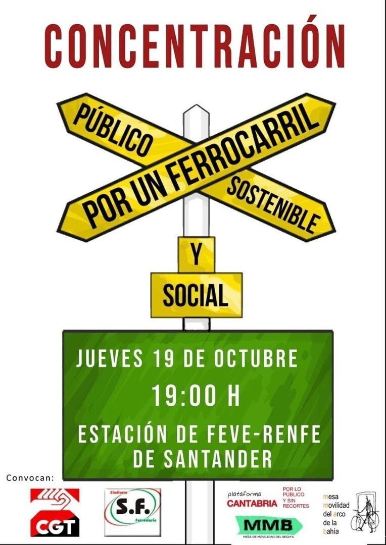 Las Mesas de Movilidad del Besaya y de la Bahía de Santander, CGT y el Sindicato Ferroviario han convocado para esta tarde, a las 19.00 horas, una concentración frente a la estación de Renfe-Feve de Santander para protestar contra el "progresivo deterioro" del servicio de Cercanías.