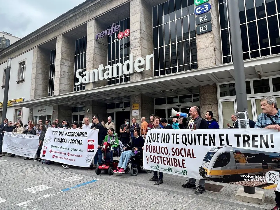 La estación de tren de Santander ha sido el lugar en el que se ha desarrollado este viernes la segunda jornada de la movilización que están llevando a cabo varios colectivos en defensa de un ferrocarril "público y social" a lo largo de la vía férrea de Ancho Métrico Irún-Ferrol.