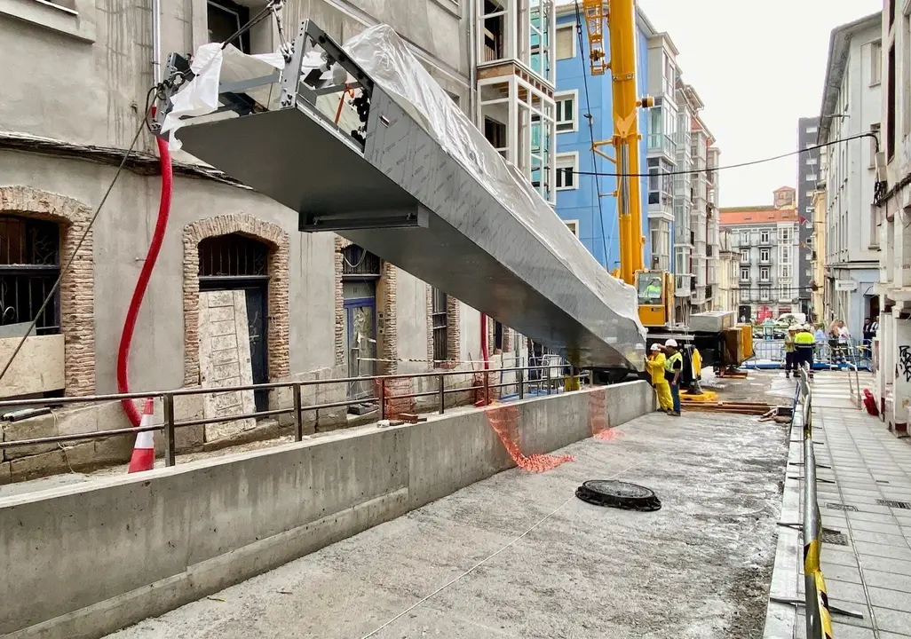 El nuevo itinerario mecánico entre Jesús de Monasterio y Juan XXIII prevé estar finalizado el próximo mes de agosto, tras los trabajos de montaje de las dos rampas restantes en calle La Florida, que salvarán un desnivel de 3,33 metros y 3,78 metros, con una inclinación de 10º, en cuya colocación se emplearon dos grúas de gran tonelaje.