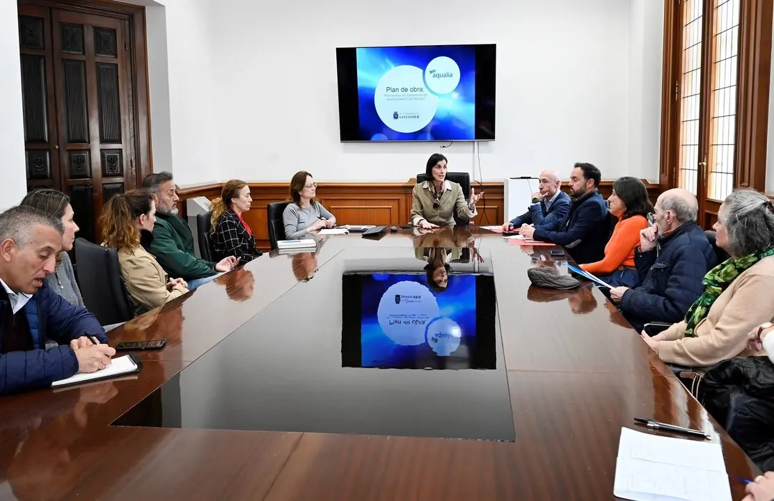 En el encuentro también han participado la concejala de Medio Ambiente, Margarita Rojo, y técnicos de la empresa concesionaria del servicio municipal de aguas, encargada de realizar los trabajos que empezarán el próximo 21 de abril y cuya finalización está prevista para la semana del 9 de junio.